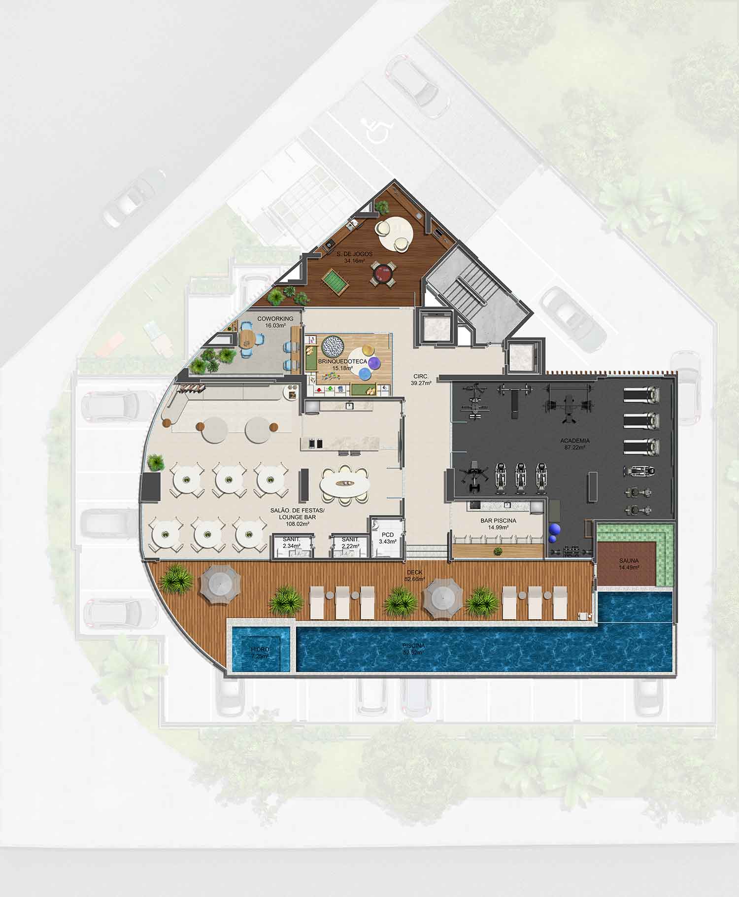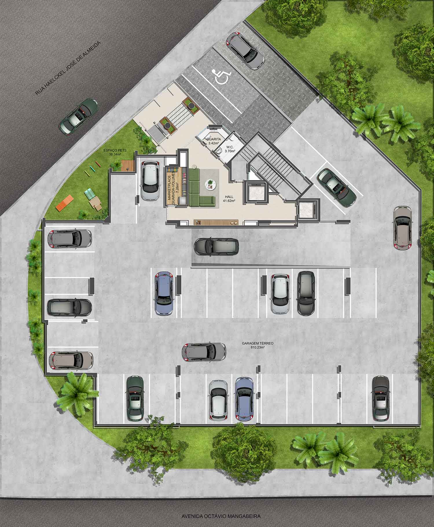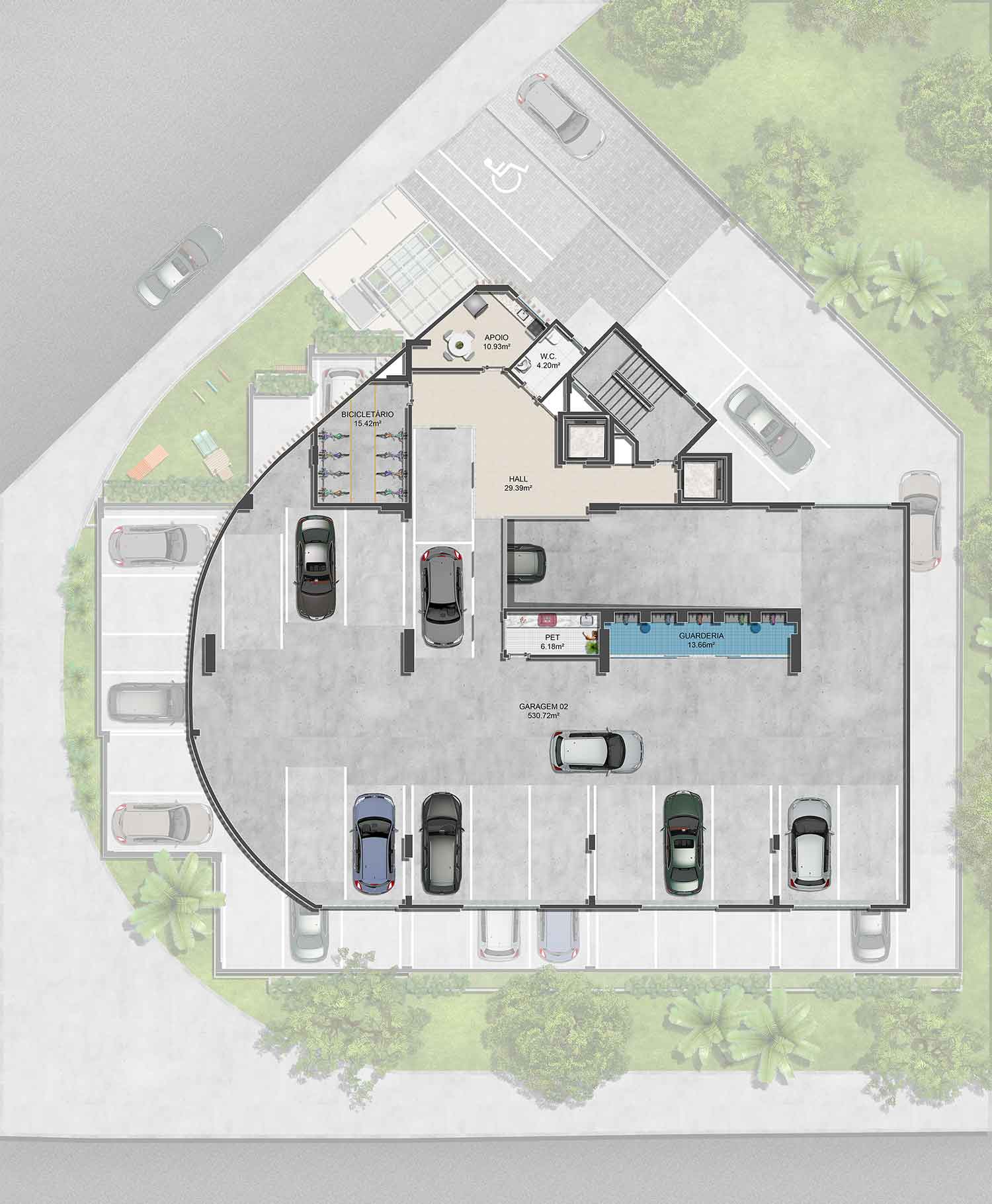 • 03 pavimentos de garagem: 01 vaga por unidade